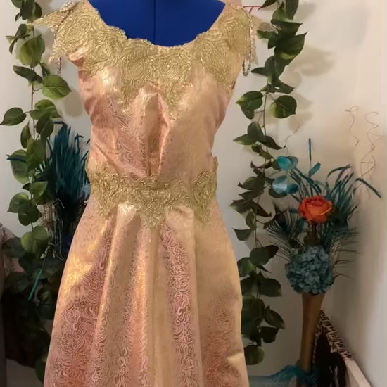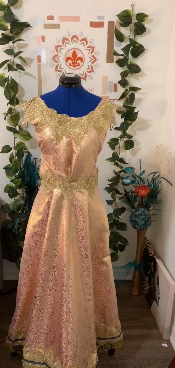 🧵🪡HANDMADE- Very Classy and Pretty high quality Silk Brocade Dress. Mid-weight not too heavy or too thin. Great for all occasions.